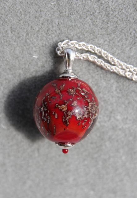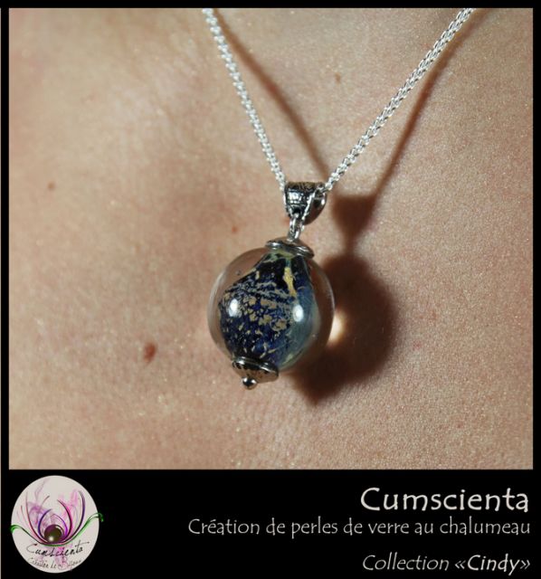 Puis enrobage de la perle décorée de frite d'aventurine avec du verre transparent